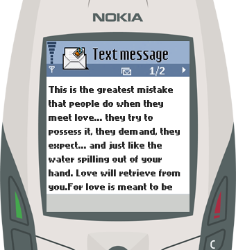 Dis is d gr8test mstke dat pipol do wen dey meet love… they try 2 possess it, they dmand, they expect… and just lyk d water spilling out of ur hand. Love will retrieve frm u.4 love is meant 2 b free, u cannot change its nature. If DER r pip0l u love, allow them to be free beings. Give and d0n’t expect. Advise, but don’t order. Ask, but nver dmand. It myt sound simple, but it is a lesson that may take a lyftme 2 prctce.Ü…