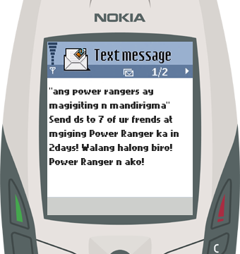 Send ds to 7 of ur frends at mgiging Power Ranger ka in 2days! Walang halong biro! Power Ranger n ako!